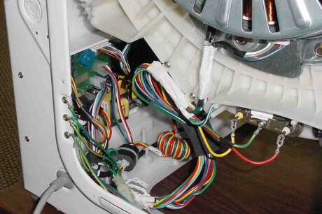 Нередко у стиральных машин Электролюкс возникают повреждения внутренней электроцепи, отвечающей за подачу питания к клапану подачи воды, УБЛ и прочим механизмам. Вибрации часто приводят к обрыву проводки, а высокая влажность – к окислению и разрушению контактов. Мастер прозвонит цепь мультиметром и устранит повреждения.