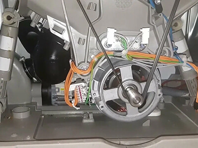 Обязательно стоит проверить сливной насос. Нужно приостановить подачу электричества и воды в машинку. Слить оставшуюся жидкость из бака через аварийный отсек. Снять нижнюю панель для доступа к насосу, осмотреть его на предмет видимых повреждений или засоров. Если он сгорел или вышел из строя, потребуется заменить его на новый.
